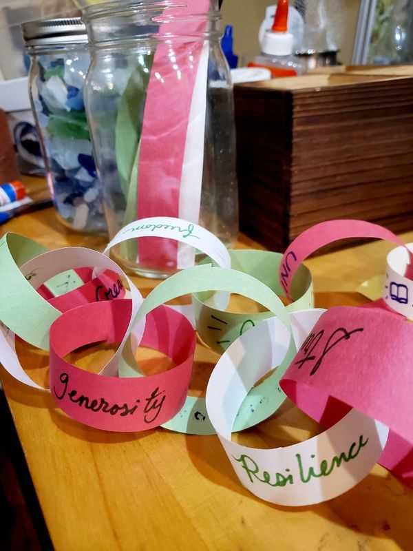 Cut one inch strips of construction paper and write your hopes, intentions, or things you hope to "work on" during the advent season