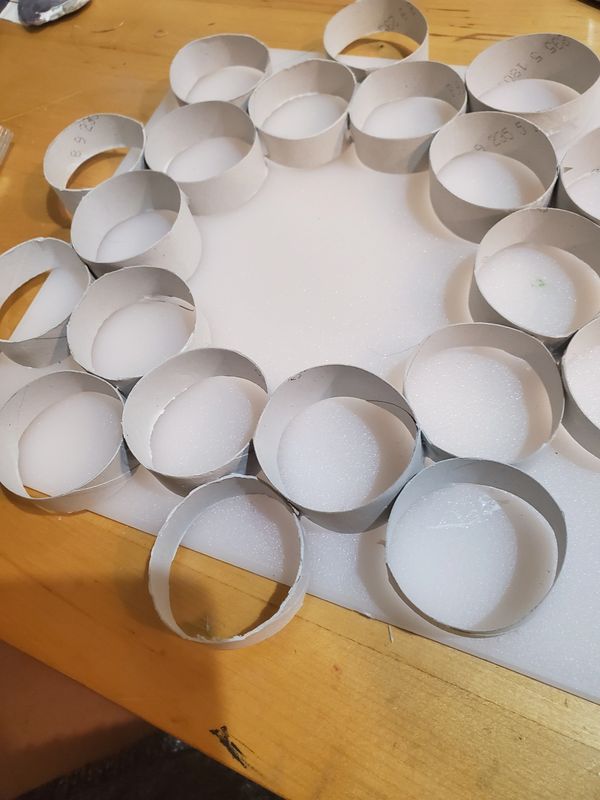 Step 3: Using something round as a guide, begin gluing the sides of the rings together. Make as big as you need.