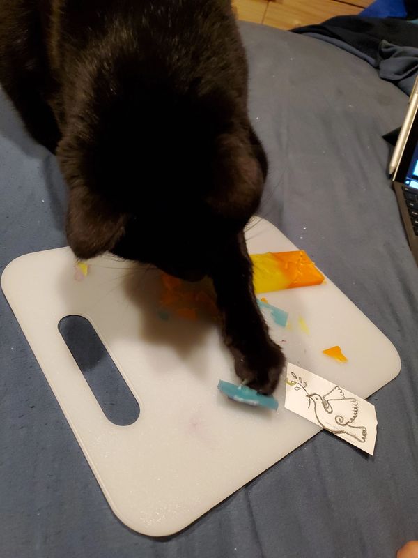Step 2: Use an x-acto knife (or a cat with very sharp and precise claws) to cut the shape in relief.